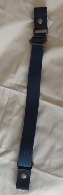 Elle mesure 3 cm de large et environ 57 cm de long réglée au plus court et environ 89 cm de long réglée au plus long.